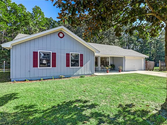 Freshly painted and a new roof! This 4/2 is located in a cul de sac on a large lot. Spacious great room with bay windows. Eat in kitchen as well as a dining area. Sliding glass doors open to a covered patio with views of the private wooded backyard. Natural gas available and can be accessed for range or dryer. Sellers are offering a flooring allowance.