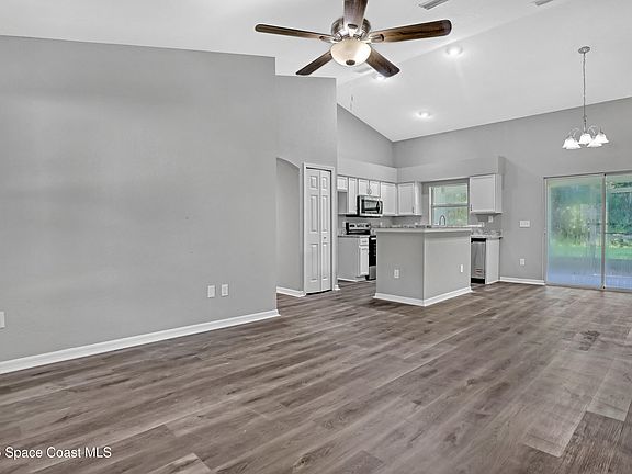 High ceiling in the living area, natural light, and a bright open layout makes this 3 bed 2 bath home a retreat you will love coming home to. Freshly painted with new flooring, updated baths, and a new HVAC and water heater for peace of mind. Enjoy morning coffee on the shady front porch, then gather friends for BBQs on the oversized screened lanai. Located in SE Palm Bay near Bayside Lakes, everyday conveniences like Publix, dining, and schools are minutes away, while Turkey Creek Sanctuary, Fred Poppe Park, and Melbourne beaches invite endless outdoor adventure.