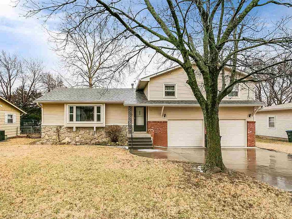 Spacious and well-maintained Tri-level home with great curb appeal in the Township Village Addition! Great location on the west side of El Dorado with close proximity to Oil Hill Elementary and quick access to the turnpike or Highway 254. This 3 Bedroom, 2.5 Bath offers 2,144 square feet and features a large kitchen/dining room and living room on the main level, 3 Bedrooms and 2 Baths on the upper level and a Family/Rec room and ½ Bath on the lower level. Attached 2 Car garage! Improvements include top-of-the-line replacement windows throughout, new garage doors, vinyl siding and an Impact-Resistant shingled roof. Backyard amenities include a nice fenced-in yard, wood deck and separate patio.