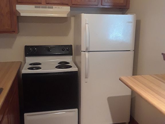 No smokers allowed- please do not apply. This is one unit in a triplex. It is on the second floor with steps and a deck outside. It has a one car garage. There is a front and back yard and wooded lot beyond the property line in the back. The unit is located on a dead end street, so traffic is fairly low and slow. It does come with a built in air conditioner, stove and refrigerator.