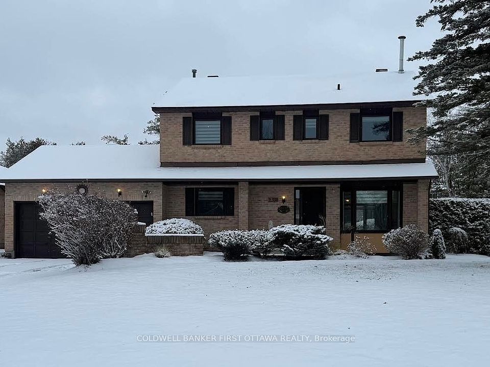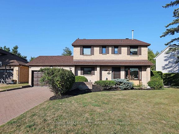 Welcome to one of Stittsville's great family neighbourhoods! This beautifully maintained home offers a spacious and versatile layout perfect for modern living. The inviting foyer opens to a large living/dining room combination, currently enjoyed as a double living room, featuring a natural gas fireplace and a bright bay window with sitting ledge. The expansive eat-in kitchen boasts granite countertops, ample cabinetry, and a second bay window overlooking the stunning backyard and pool. A cozy family room (currently used as a dining room) includes a wood-burning fireplace, while a convenient main floor laundry/mudroom with custom built-in cabinetry provides access to the two-car garage. A convenient powder room completes the main level. Upstairs, the circular staircase leads to a generous primary suite with a full wall of closet space, two large windows, and a private ensuite with makeup vanity, soaker tub, shower, and linen closet. Two additional good-sized bedrooms, another full bath, and an extra linen closet provide plenty of storage and comfort for the whole family. The exterior is equally impressive with extensive landscaping, an interlock walkway and driveway, and a fully fenced backyard (wrought iron) showcasing a spectacular 41 x 20 pool with slide and diving board, pool shed, new decking, and irrigation system. Upgraded insulation adds energy efficiency to this well-cared-for property. This home is a true gem in a sought-after family-friendly communityperfect for entertaining and everyday living. Available Immediately! 24 hours irrevocable on all offers. Recent Updates - Roof (2022), Furnace (2014) serviced annually with one year remaining on P&L Warranty, A/C (2022), entire home painted 2025, triple glazed windows (2023) new blinds (2024), Insulation removed and new insulation installed to R50 (2023)