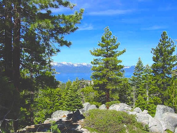 We're up high on the mountain ridge at the top of the Kingsbury Grade (Daggett Summit) at 7500ft elevation in Tahoe Village so nature and the views to die for are all around