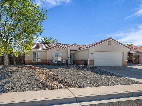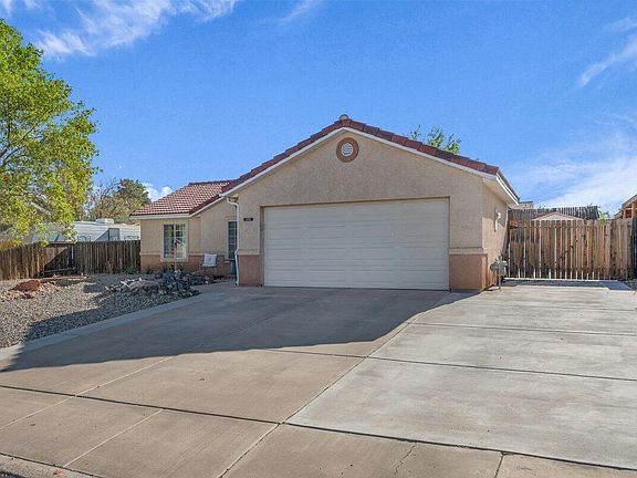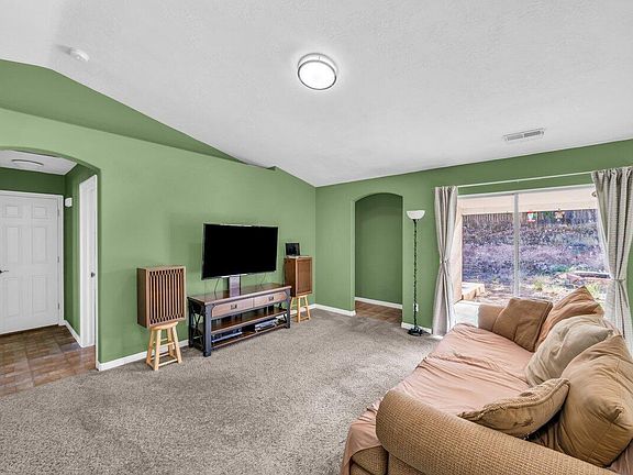 This stunning home offers a serene lifestyle with a xeriscaped front yard and river walk, overlooking breathtaking views. Nestled in a peaceful neighborhood, you're just minutes away from Grandpa's Pond and Walmart, providing convenience without sacrificing tranquility. The home features tall, vaulted ceilings, a spacious kitchen with a new refrigerator (seller would consider leaving the kitchen cart for extra counter space), and an amazing primary bedroom with a renovated en-suite bathroom and large walk-in closet. Enjoy peace of mind with a new HVAC system just installed in December 2023, all new rear windows, and ample parking on the fully cemented RV parking area spanning from the street to the backyard. The expansive, fenced backyard is a dream, featuring a covered patio, two sheds (one with power), and tons of potential to create your own oasis. Buyer to verify all information, deemed reliable, however buyer to verify all info including utilities, rental restrictions, and HOA information if applicable.