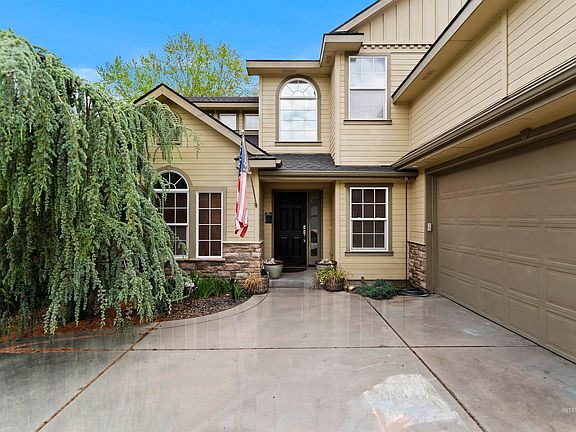 Seller offering $25,000 in credits on this spacious 2 story nestled on a quiet cud-de-sac in one of the most desirable neighborhoods in Star. Be greeted by 18' ceilings and a beautiful raised fireplace surrounded by floor to ceiling windows. Open kitchen to great room layout is perfect for entertaining. Walk upstairs to a suspended hallway and a large bonus room. Large lot features a shed for extra storage, ample space for your garden, small pond, and space for a pool. Property is plumbed and ready for a hot tub/spa. New heater, dishwasher and double oven.