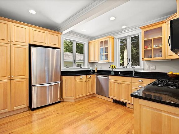 This lovely circa 1920's four-bedroom Colonial has been beautifully maintained & is just blocks from Needham Center with its restaurants, shops, & commuter rail. This home offers a flexible floor plan with separate access for a home office or au pair & great space for entertaining & easy family living. On the first floor there is an eat-in kitchen with granite countertops & gas cooking, along with a formal dining room with french doors leading out to a deck overlooking the yard. Additionally, on this floor, there is a large living room that runs the length of the house with a wood-burning fireplace, a bedroom & a half bath. The second floor offers a full bathroom & three generous bedrooms, including a large master bedroom with two walk-in closets & a separate sitting room/home office. One of the bedrooms also has a separate study area/play space. The lower level features a full bath & a large family room/bedroom. A newer roof & high efficiency furnace complete this special offering.
