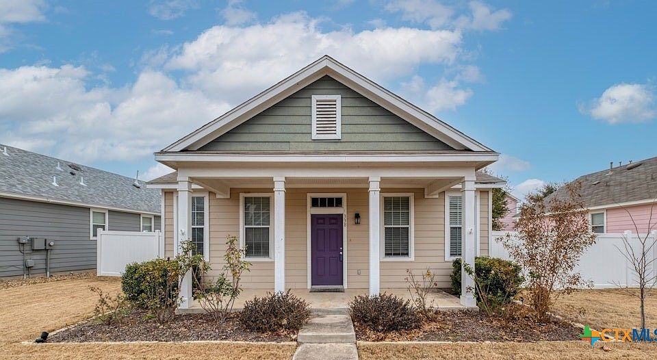 Beautiful one story, open 3BR/2BA plan with added flex room with double french doors, perfect for a studio/office/exercise room. With an abundance of natural light, ceramic tile throughout the main living spaces and carpeted bedrooms, this home is ready for new owners! Huge living/kitchen space full of windows ~ large primary bedroom features walk-in closet and custom upgraded tiled shower. Spacious secondary rooms as well. HVAC is approx. 2 years old, and Water Heater is approx. 1 year old. Covered back patio and large side yard make this home perfect for children and pets! 2 car garage with alley access. Enjoy direct access to the Blanco River and lots of walking and hiking trails!