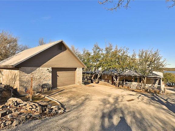 Waterfront Retreat! This 4 BR, 4.5 bath home PLUS finished basement is perfectly situated to give you a spectacular view of the lake! Wrap around porches & an open living interior make this the ideal place for family & friend gatherings. The finished basement has a safe room-bedroom, living room, full bathroom & an indoor shop (approx 25x25) attached to the garage. Outside is another workshop-garage (approx 24x30), a hot tub, GUEST CABIN with bathroom, a separate screened in kitchen, grills, picnic tables, a dock with boat lift, bathroom, & upper deck. The driveway goes from the gated entrance all the way to the dock. Approx 19ft water at dock at spillway on 3-14-19. Come see, believe, & make memories!