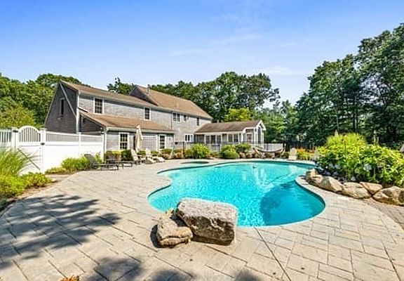 Welcome home to Woodland Hills! This is the home you've been waiting for !, Must See-Designer in-ground pool & hot tub, yard, cul-de-sac & neighborhood. Plenty of room to spread out in this beautiful 10 room, 4 BR, 3.5 bath, 3 car attached garage. – 2 story foyer, mudroom area, open floor plan, bright updated, eat-in granite kitchen- stainless steel Viking Stove and Subzero Fridge and Wine cooler in the island. Fireplace, cathedral FR w wood floors. Stunning wood cathedral sunroom with radiant heat floors & french door to composite deck, formal DR & LR w/ gleaming hardwood floors, updated baths. Impressive Primary with master bath and 2 closets, 3 generous BRs. 2nd floor laundry, beautiful finished basement with full bathroom and extra bedroom. Newer hot water heater,newer septic system, extended yard. Desirable neighborhood w/tree-lined streets, sidewalks, discover what Marshfield has to offer – beaches, golf, restaurants, shops, minutes to highway, commuter rail, and school complex