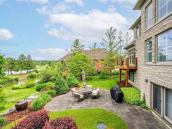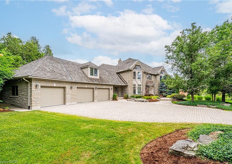 Discover refined living in the prestigious River Oak Estates—where timeless design meets an extraordinary natural backdrop. Set on a lush half-acre lot backing directly onto the Grand River, this 6,000+ sq. ft. residence captures breathtaking views of the water, pond, and Grand River Trail. Thoughtful landscaping enhances its privacy and curb appeal, creating a truly peaceful setting. Inside, sophistication unfolds across three levels, with 5+2 bedrooms and 6 bathrooms offering comfort and flexibility for family and guests. The grand foyer opens to an elegant staircase and sun-filled formal living and dining rooms—ideal for entertaining large gatherings. The kitchen, complete with an oversized island and casual dining space, extends to a spacious deck overlooking the river. A stone wood-burning fireplace anchors the family room, where floor-to-ceiling windows frame the scenic outdoors. The main floor suite is a private retreat featuring a gas fireplace, walk-in closet, and balcony access. Its luxurious ensuite includes dual vanities, a soaker tub surrounded by windows, and a glass walk-in shower. Upstairs, you’ll find four additional bedrooms, a home office with custom built-ins, and a dedicated media room. The lower level offers two more bedrooms, a 3-piece bath, wet bar, games area, and walkout access to a stone patio and landscaped gardens—perfect for indoor-outdoor living. Blending comfort, elegance, and a rare connection to nature, this River Oak Estates home delivers a lifestyle as remarkable as its setting.