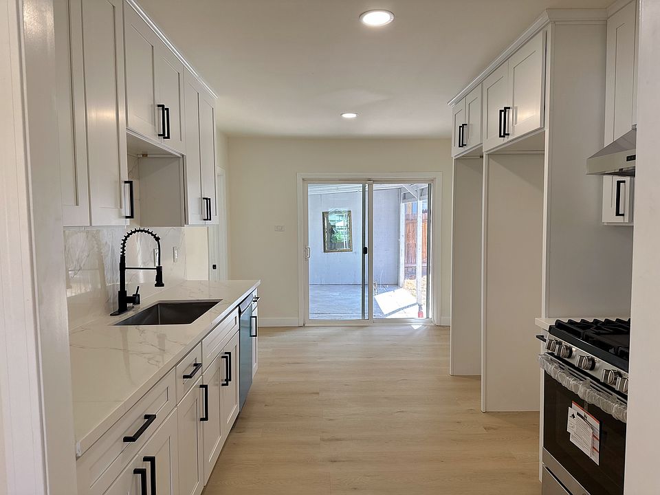 This charming, fully renovated home offers 3 bedrooms and 2 bathrooms within 1,000 square feet of living space. It features fresh paint, new vinyl flooring, a modern kitchen, and updated bathrooms. The home is bathed in natural light and includes ample parking space. Additionally, there is a separate ADU at the back with its own entrance and driveway, providing extra privacy. Owner pays gardener. Utility fees are shared with the ADU tenant by headcount.