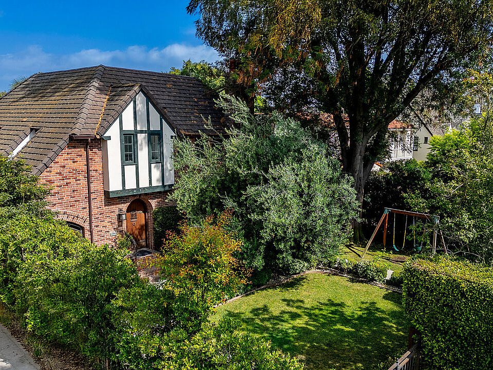 Stately English Tudor with a 2-story ADU and pool+spa on a gracious 10,500 Sq Ft flat lot mid-block on Highland Ave. The property is gated and surrounded by walls of trees providing a lush front entrance full of greenery and providing privacy and security. Once inside you will notice how quiet it is as you are welcomed by a formal entryway with a sweeping staircase. Step-down into the living room with fireplace and bay windows looking onto the garden. Flow into the massive dining room with wood paneling and sconce lighting. Multiple doors to the outdoors creates an indoor / outdoor flow. The sunny chef's kitchen overlooking the yard has 2 sinks, quartz counters and SS appliances which include an oversized refrigerator / freezer, 6-burner gas range and wine fridge. A bedroom with en-suite bath and a carefully hidden powder room complete the first floor. Upstairs you will find 3 spacious bedrooms - including a beautiful primary suite facing the backyard. All bedrooms are ensuite and have renovated bathrooms, along with ample closet space. Upstairs laundry area completes the second level. Outdoor spaces include a Trek deck with built-in bar area perfect for entertaining and outdoor dining. Grassy lawn and a stately lemon tree pave the way to the fenced swimming pool & spa. In 2017 a custom ADU was built with modern architecture to compliment the old-world charm of the main house. Insanely high ceilings define the two levels of the structure which is wrapped in IPE, a tropical hardwood. First level (with a separate entrance) has custom doors and was designed as an office with multiple storage closets and a designated storage room the size of a proper garage. Second level is a 1-bedroom guest house complete with a formal entry, large bedroom, walk-in closet, full bathroom and kitchenette. An outdoor deck off the living room overlooks the pool and offers tree-top views. Paid off solar panels atop the ADU add a benefit to the entire property. Tech ready and with two separate mini-split HVAC systems this "house" will provide you a world of extra living space. Main house is 3124 Sq Feet with 4 Bedrooms (3 up, 1 down) and 4.5 bathrooms. ADU is 1422 Sq Feet with 1 bedroom + 1 bathroom. The house was renovated in 2011 which included the new pool+spa, a new roof, bolted foundation, new windows (dual-paned), upgraded electric, plumbing, HVAC and a full renovation of the kitchen and bathrooms. ADU built in 2017. Property is within the Hancock Park HPOZ and located in the 3rd St Elementary school district (buyer to verify enrollment). A very special home loaded with original charm and renovated with an abundance of upgrades and newer spaces. You must see in person to appreciate!