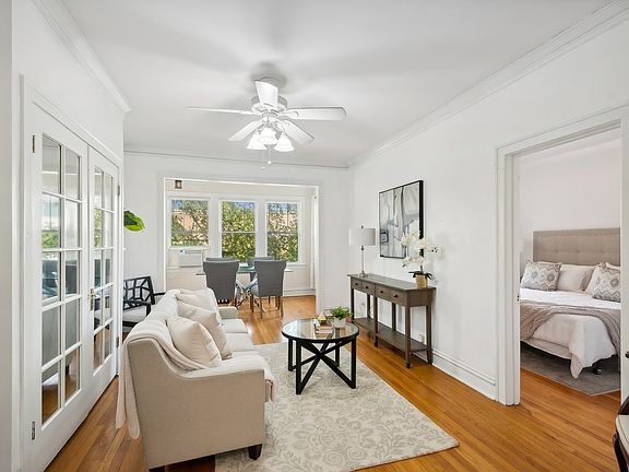 Welcome to this sun drenched, top floor condo in a fantastic Oak Park location. This over sized one bedroom is perfectly updated while maintaining all the charm of the 1929s build! The living room features timeless built ins, mirrored French doors and a sunroom perfect for an office or sitting room. The dining room is spacious and bright. The kitchen has new tiling and a walk in pantry. The bathroom was renovated in 2020 when the building put in new risers. Enjoy the convenience of an in-unit washer and dryer and hardwood floors throughout. The storage room is included in price. Easy permitted street parking. This building is well maintained and professionally managed with both a new roof and tuck pointing completed in 2021. This property is just steps away from local shops, restaurants, parks, and public transportation. Don't miss out on this opportunity!