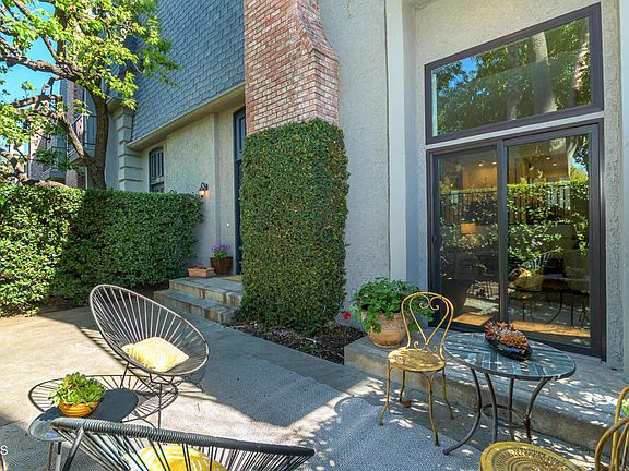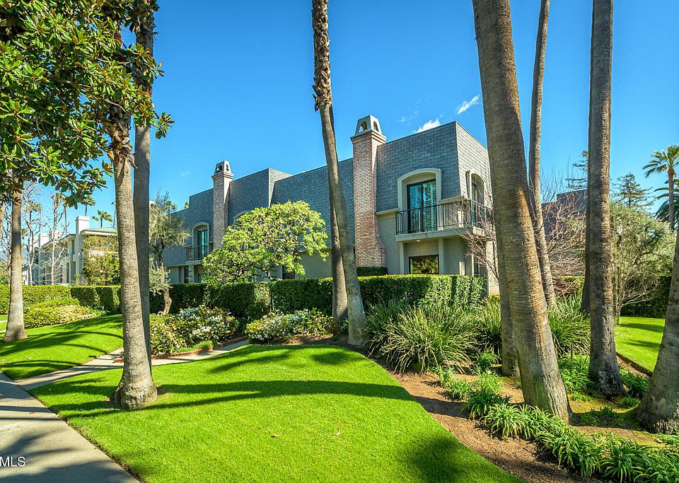 Chateau de Ville is one of the most beautiful buildings on scenic S. Orange Grove Blvd. This beautiful townhouse is located across from the historic Tournament of Roses Mansion, and surrounded by other beautiful single-family homes, prime condo buildings, and lush mature landscaping. The front corner location provides this pristine home with numerous tall windows bringing in light and neighborhood views. Perfect for entertaining, the large living room opens to the spacious dining room, and out to the enclosed patio for easy entertaining. The remodeled kitchen has white cabinetry, granite countertops, and stainless steel appliances, plus cafe eating area. The spacious first floor den/office has a closet and easy access to the adjacent 1/2 bath. Upstairs are two very large bedroom suites. The primary suite has tall windows, fireplace, and oversized en suite full bath. The second bedroom suite has an en suite 3/4 bath. Beautiful details throughout, excellent storage, and attached oversize two-car garage, too.