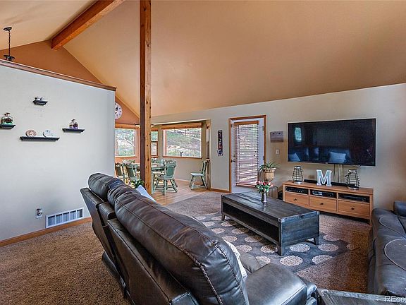 Yummy summer in the mountains. Spread out on a front deck with views of craggy, snow-capped peaks, meadows and rolling hills. A large fenced front yard for dogs and kids. Room for a sunny garden. This mountain contemporary home has a great floor plan. It feels much bigger than 1,736 square feet with vaulted ceilings, bay kitchen seating and a wall of windows that keep this home bright all day long. Less than an hour to ski resorts, national forests, or nightlife in Denver. No more heating up the car outside in winter months. The 2-car garage is fully insulated (garage doors and walls), creating residual warmth. Mechanical systems are easy to access in a dedicated mechanical room. These sellers have taken very good care of the home. Nearly every appliance has been replaced in 2019 and 2020. The lower level offers a large family room with ground floor access, a large guest room, and bath and laundry room.
