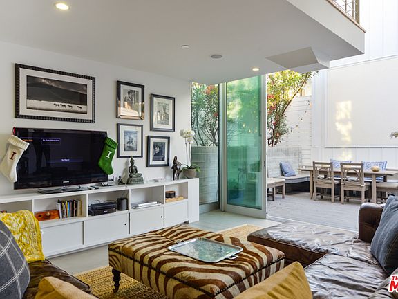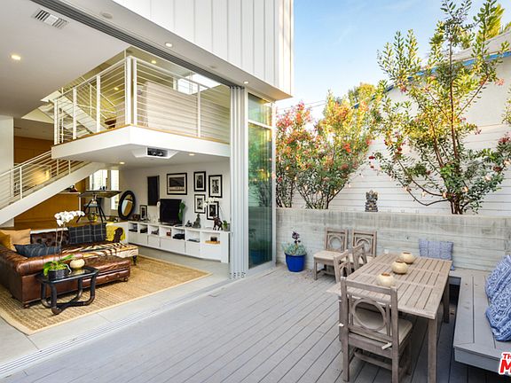 Chic design meets sophisticated and sustainable living in this Venice Beach architectural gem. Enjoy high-quality craftsmanship and stylish amenities throughout this 4 bed/ 2.5 bath tri-level certified LEED Gold home. Step inside the sunken living room complimented by a 20-foot wide/12-foot high Fleetwood sliding wall that opens up to a private courtyard w/ outdoor projection screen. The open kitchen features custom rift cut oak cabinetry and a floating mezzanine level provides space for dining. The second floor offers 3 beds and a full bath, while the 3rd floor provides the master suite w/ extra large his & her walk-in closets, en suite master bath, spa tub, and private roof deck. Additional features include an 8-panel solar power system, nest thermostat, Bosch appliances, Grohe bath fixtures, Anne sacks tile, built-in audio & 2-car garage. A truly one-of-a-kind property, located steps to trendy shops & restaurants on Rose Ave & a short stroll to Abbot Kinney, this Venice masterpiece.