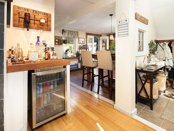 Welcome to this beautifully maintained three-bedroom home located on the peaceful outskirts of town. Step inside to discover a stunning remodeled kitchen featuring granite countertops, stainless steel appliances, and a premium Viking 4-burner propane stove. French doors lead out to an inviting patio complete with a pergola - perfect for relaxing or entertaining guests. The impeccably landscaped and fully fenced backyard offers both privacy and charm, creating an ideal space for outdoor gatherings. Inside, the cozy living room is highlighted by a wood stove, adding warmth and character. Upstairs, you'll find three comfortable bedrooms, a convenient laundry area, and a newly remodeled bathroom. Additional highlights include new replacement windows throughout, a new oil tank in the basement, and the potential to add a first-floor bathroom. The property also features a one-car garage with an overhead door opener and additional barn doors on the side, offering extra storage or workshop space. measurements are approximate. Don't miss the opportunity to make this charming, move-in-ready home yours!