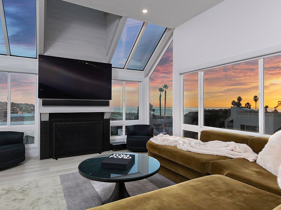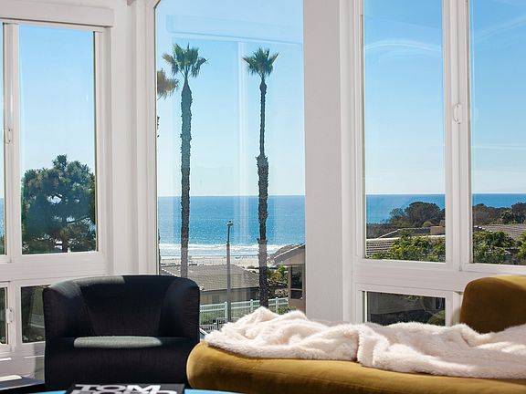 Panoramic 240-degree views of the ocean, Del Mar racetrack, and city lights set the tone for this fully furnished 3-bed, 2.5-bath home in Solana Beach. The main living level opens to an upper deck that captures the sweeping views, with large windows that pull in abundant natural light and steady ocean breezes. An open floor plan seamlessly integrates the living, dining, and kitchen spaces, creating a natural flow for everyday living and entertaining. Completely renovated in 2022, the home features hardwood floors, energy-efficient appliances, and high-quality Restoration Hardware furniture throughout. The kitchen is stocked with everything you need, from cookware and utensils to small appliances, so you can move in and start living on day one. The primary suite features an additional deck for fresh air and a quiet place to unwind, while the two secondary bedrooms are generously sized with ample storage. There is private in-unit laundry, plenty of extra storage, and an oversized two-car tandem garage with room for a third vehicle or additional gear. Guest parking is conveniently located nearby, and pets are welcome, making the home friendly for both people and their animals. Location is the daily perk. From your front door, you can walk to the beach, Del Mar, and Solana Beach, and enjoy dining and shopping, with quick access to the 5 for work or weekend trips. The Saratoga West community adds a pool, spa, gym, sauna, and well-kept common areas. Sunrises and sunsets over the coast are a regular part of life here, which makes this home a strong fit for someone who wants an upscale coastal lifestyle with real convenience built in.