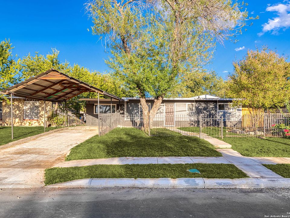 Welcome to 338 Surrels Avenue, a well-maintained single-story home offering approximately 1,416 square feet of living space. The floor plan features three bedrooms, two full baths, and two comfortable living areas, providing flexibility for everyday living and entertaining. No carpet. No HOA. The eat-in kitchen offers plenty of space for meal prep and casual dining. A converted garage adds additional versatility - perfect for use as a fourth bedroom, home office, or hobby room. The home also includes an indoor laundry area with generous storage and central HVAC for year-round comfort. The property is fully gated in front and fenced in back. Also includes a driveway with covered carport parking. Conveniently located near major thoroughfares, schools, shopping, and dining, this home provides a great opportunity for buyers seeking value and potential in an established San Antonio neighborhood. Just inside loop 410 near hwy 151 Schedule a tour today!