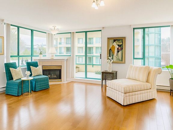 This meticulously maintained, sun-filled 1,292 sqft 'D' Plan suite offers 2 bedrooms, 2 bathrooms and bright solarium/den with desirable S/W exposure. Immaculate and move-in ready, this large suite showcases rich hardwood floors, newer s/s steel appliances, granite counters, and elegant Kohler and marble bathroom finishes. Enjoy a walk-in closet, insuite laundry, gas fireplace, a light-filled solarium, a wraparound covered balcony, plus a second deck off both bedrooms for plenty of fresh air. Resort-style amenities include a gym, indoor pool, spa, sauna, social room, resident manager, two parking stalls, a large storage locker, workshop and more. Steps to Park Royal Shopping Centre, great restaurants, cafés, Ambleside Beach, the Sea Wall and scenic trails. Bonus: Small dogs are welcome!