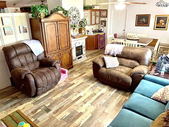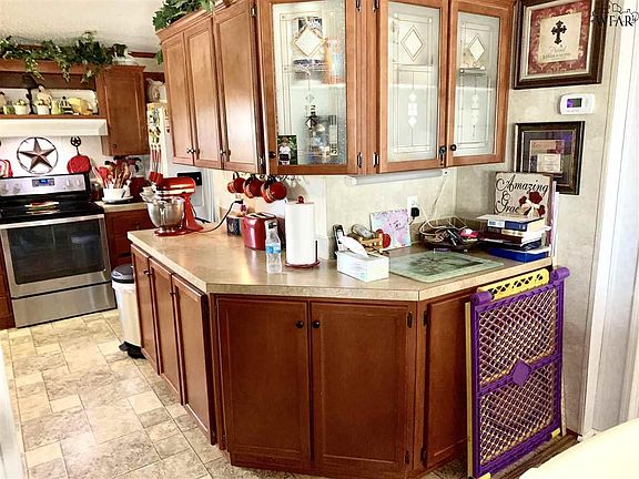 Beautiful country living home that overlooks a stock tank! Three bedrooms, 2 bath, 2 car carport sits on 2.50 acres in Arrowhead Ranch Estates. Open floor plan with new laminate wood flooring. The spacious kitchen has a newly replaced dishwasher and stove. Secluded master bedroom with nice garden tub. Back pasture cross-fenced for animals. Workshop with electricity! Comes with white refrigerator, front loading washer/dryer & shipping container! MUST SEE!!!