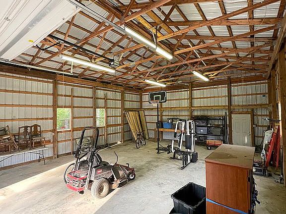 in ground pool 18 x 36 with a salt system, 900 sq foot wood deck on the back, 200 sq ft. covered deck with recessed lighting and ceiling fans, water softener, dual zone heating and air conditioning. E shield in all attic spaces. 1200 sq ft garage with 6in of concrete with huge front apron. It has its own electric meter and 14ft ceiling. This is a mechanics shop ready garage. Wrap around driveway for easy in and out