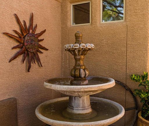This beautiful open & spacious split floor plan home features 4 large bedrooms, a 3 car garage, formaldining room, a large kitchen that has butcher block countertops, an island, vaulted ceilings, surround sound, outlets above soffits, solar panels withsolar city, a large master suite with w/dual sinks, tub, sep shower, and large walk in closet, This home is entirely ready to move into as soon as you close. Oh, did I mention that this neighborhood is an ALL single story subdivision??? That's right !! No neighbors looking down on you in the backyard! It's definitely a rare find in Oro Valley, especially in this price range. Sellers repainted the exterior in December 2016. Front yard has anenclosed paver patio with a beautiful water feature. The back yard has a covered paver patio, built in BBQ kitchen area with a gas stub out, grass, a fire pit, huge paver basket ball area, planters and lot's of drip irrigation. The back yard has a covered paver patio, built in BBQ kitchen area with a gas stub out, grass, a fire pit, huge paver basket ball area, planters and lot's of drip irrigation.