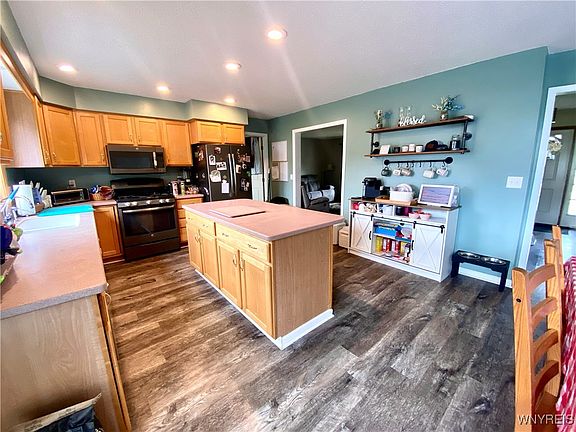 4 Bedroom 2 1/2 bath Colonial on neighborhood street. Living room opens to a spacious eat-in kitchen featuring breakfast bar and slider to deck. Gas fireplace in large family room. First floor laundry. Primary bedroom with bathroom. Attached 2 1/2 car garage. Backyard includes inground pool. Great location. Close to amenities. Frontier schools.
