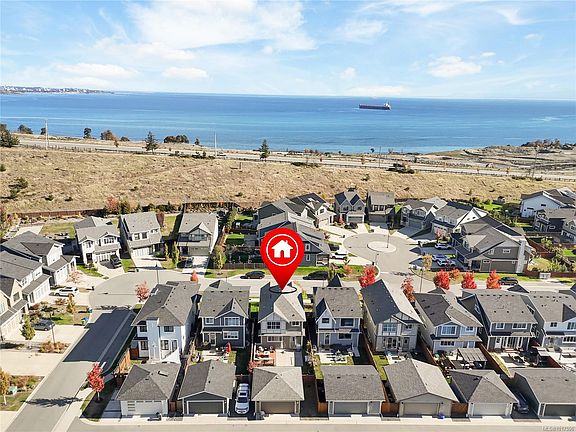 Here is your chance to own & live in Royal Bay! This bright, 2020 green-built 4BR, 4Bth home is on a quiet street, close to the ocean & has many upgrades. Upstairs you'll find 3BR & 2 full Bths, downstairs is another BR, full bth, storage & fabulous family room! The airy, open-concept main floor has a big beautiful kitchen w/abundant cupboard & counter space, eating bar & window to backyard. Detached garage & adnl parking off lane are awesome bonuses plus a cozy natural gas FP, on demand hot water, custom blinds & upgraded HW flooring. Enjoy morning coffee on the charming front porch. Spend afternoons & evenings in the fully fenced, low maintenance, SW exposed backyard w/space to play. You’ll love the beautiful solid wood deck, in ground irrigation, lovely landscaping & lighting. Royal Bay offers awesome playgrounds, walking trails, schools, grocery, pharmacy, post office, coffee & eateries within steps, plus spectacular Royal Bay Beach and Esquimalt Lagoon. Priced right - act quick!