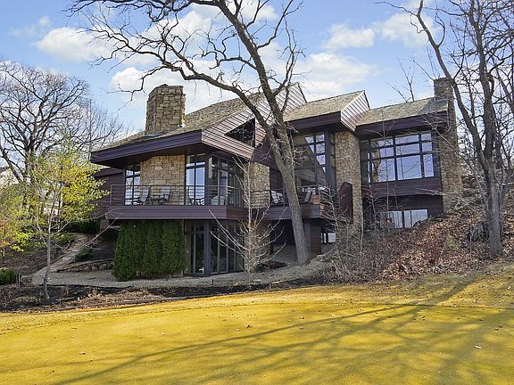 Stunning Contemporary located on legendary 16th of Hazeltine National. Walls of windows bring the outside inside and the lake is a wonderful palette of seasonal splendor but summer is enhanced by the myriads of flower gardens. Too many designer elements to mention by renowned architect Jack Smuckler who was at his best with this home. One of the many highlights is the glass wine room and wet bar in the lower level, perfect for the connoisseur.