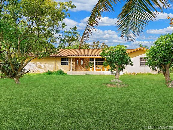 In the Heart of Homestead this three bedroom, two baths ranch style home sits on 9.55 acres of agricultural land. Two car garage, two Florida rooms adding to its spacious living room and dining area. Privately located lot on a dirt road on 212 Ave & 338 St. Just minutes from Everglades National Park, Fruit & Spice Park, Biscayne National Park, Miami Homestead General Aviation Airport and Homestead Hospital.Over 1,00 fruit trees consisting of Cuban Plums (Ciruela Cubana), Avocado (Aguacate), Longan, Mamey, Chinese Guava (Guayaba China), and Starfruit (Carambola) that generate approximately 10,000-15,000 annually in fruit sales.Zoning AU