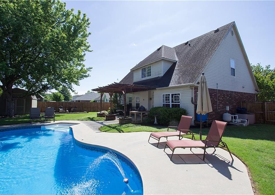 *Buyer financing fell through! This home is ready to go; Inspection done, FHA Appraisal done, ready to close! Lrg Bonus rm, office w/built in desks. Fml dining, eat in kitchen, kitchen island stays. Updated granite in kitchen & baths, updated lighting, glass tile shower in master, whirlpool tub has heater. Inground pool, pergola, firepit. Centrally to Rogers, Springdale, and Fayetteville, close to Razorback bike trails, Hunt Park and I-49 access. Shed conveys. Seller pays home warranty w/pool coverage.