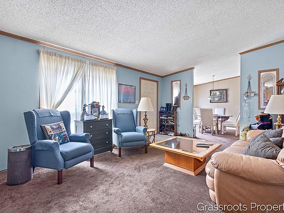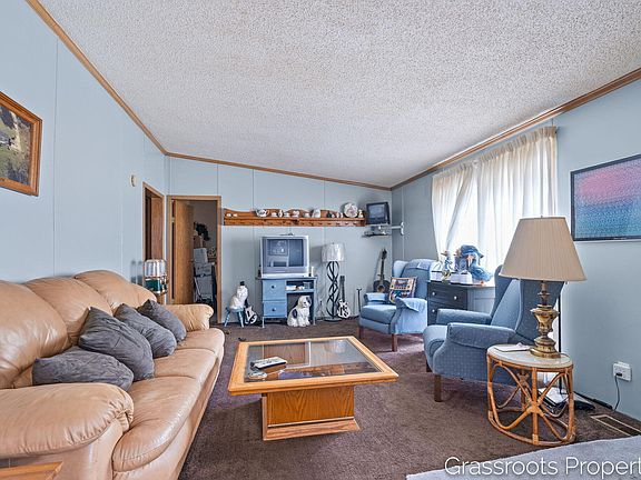 A unique opportunity awaits in Lowell schools with Ionia county taxes here on Four Pawz Trail! Investors will like that there are two homes on this single parcel which is a grandfathered feature no longer permitted. For the single homeowner most likely the single wide would be removed as needed to accommodate financing. The single wide has good rental history and could serve as a wonderful spot for a friend or family member downsizing or starting out. The double wide is spacious and has decks on three sides of the home, a fenced in back yard and an expansive front yard overlooking the pond. The pond is great for kayaking, fishing and other non wake activities. Inside are 3 beds and two full baths, the primary suite is very big! Hurry and come take a look!