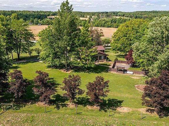 Bring the horses or your desired critters and fill this place with your love of animals or saddle up on your four wheeler and ride through the trails in the woods. If you love the outdoors & have a camper, this is the place for you! 24x48 garage for "OFF" season storage. Plenty of "Ground" to enjoy all year round fun & activities. Short distance to Lake Wilhelm for fishing, boating, bicycle trails etc. I-79 nearby permits quick travel to Pittsburgh or Erie. 3/4 acre pasture/ 2 1/2 fenced in the woods for horses to roam. Steel roof 2019. Updated spray irrigation septic. LOT SIZE IS: 438 X 1090 X 564 X 127 X 1453. Rear porch, side porch, "English" garden spot surrounded by fencing, paved circle drive to house/ paved up to the outbuildings. Insulated and uninsulated areas in the large outbuilding.