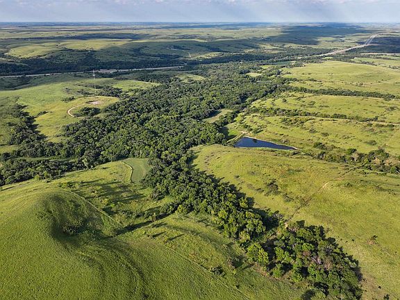 This 260 +/- acre property is located in southeast Riley County just outside of Manhattan, Kansas. It is truly the ultimate Kansas dream farm and then some! It is located in the northern heart of the Flint Hills. The property is full of diversity with hardwood timbered draws, dogwood and cedar thickets, and rolling Flint Hills native warm-season grasses. The hardwood timber on the property is incredible and mainly mixed with giant burr oak, chinquapin oak, and sycamore trees. There are 7 +/- acres of established alfalfa, clover, and soybean food plots. The food plots also have Big Rock switchgrass planted on the edges and in front of all the box blinds for concealed entry and exiting access. There are multiple wet-weather creeks, a spring-fed watering tank, and a 1.5 +/- acre spring-fed pond. The pond is stocked with huge largemouth bass and bluegill. The property has 186 +/- feet of elevation change, creating some of the best sunrise and sunset views in Kansas! The newly built 4 bed, 2.5 bath stick-built house has 2,500 square feet of living space along with a 2,200 square foot attached garage! The slab-on-grade open concept house has metal roofing and siding, custom knotty hickory cabinets, granite countertops, Onyx walk-in showers and vanity countertops, luxury vinyl flooring throughout, radiant heated floors, and a concrete safe room. Utilities installed on site include electricity, propane, two private water wells, a septic system, and high-speed fiber internet. The appliances and house furnishings are included with the sale, along with a walk-in deer cooler, whole home back-up generator, lawn irrigation system, and installed security cameras. The attached garage has epoxy floor coating, two large overhead doors to store equipment inside, and a built-in workbench. The house overlooks a 2 +/- acre food plot, so deer and turkeys can be watched daily right from the comfort of home! The diverse habitat with abundant food and water provides some of the best whitetail deer, turkey, and upland bird hunting opportunities that Kansas is known for! The property is located in Kansas Deer Management Unit 9, and has excellent whitetail deer and turkey numbers! The sale includes four Redneck Buck Palace 6'x6' blinds on 5-foot stands, two Outback Wildlife Feeder CP 6-Tube 3,000lb protein feeders, one Outback Wildlife Feeder Babyback 1,000lb directional spin feeder, and one Outback Wildlife Feeder The “Share-Kropper” directional spin fish feeder. The property is surrounded by large adjoining ranches with very little hunting pressure. The property is located on a secluded, dead-end, and well-maintained year-round gravel road. Mineral rights are intact and will be transferred to the buyer at closing. There are no active farm leases or tenants' rights in place. The property also generates annual income from an on-site cellular tower. This property is turn-key ready to hunt this year, and is a must-see to truly appreciate its beauty and everything it has to offer! Showings are by appointment only, and an agent must be present to enter the property.