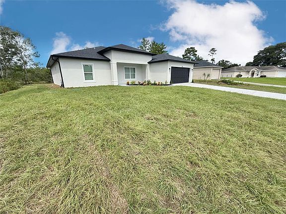 **Seller willing to contribute towards buyers closing cost** BRAND NEW - NO HOA home located in one of the most desirable and already established areas in Marion Oaks!! This builder is offering a 2-10 Home Buyers Warranty which covers 1 Year Workmanship/ 2 Year Systems/ and 10 Year Structural!! This 1,842 square foot modern home features rain gutters, modern light fixtures, high ceilings with an open style floor plan that has 4 spacious bedrooms that include ceiling fans and 2 full baths. You'll see Luxurious Vinyl Plank Flooring throughout the entire home and beautiful Porcelain Tiles in the bathrooms. The kitchen features Wood Cabinetry with Elegant Quartz countertops, backsplash, Stainless Steel Appliances, and a Breakfast Bar. The kitchen flows effortlessly into the family room that has glass sliding doors that lead into the covered Lanai which is perfect for outdoor activities and entertaining! Conveniently located near both I-75 and Highway 484. Short drive to Rainbow Springs State Park which offers hiking trails, swimming spots, and plenty of picnic areas! This BRAND NEW BLOCK CONSTRUCTION home on CITY WATER, 2 CAR GARAGE with garage openers and NO HOA sitting on a LARGE LOT is ready for you to call it home!!