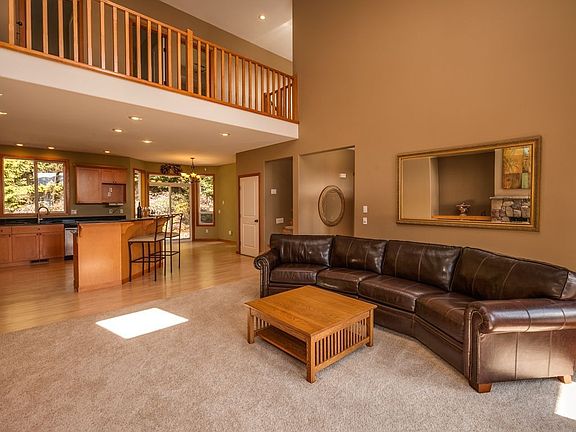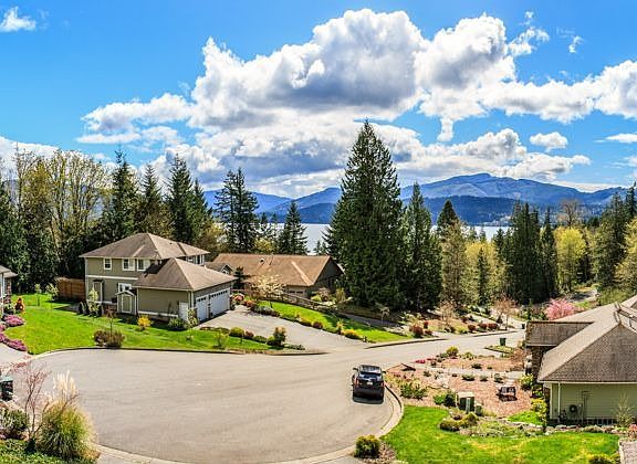 Wonderfully updated 4 bedroom home nestled at top of cul de sac to take in the lake and mountain views. Very welcoming and versatile floorplan. Living room has vaulted ceilings, wall of windows opens to deck. Gourmet kitchen with new appliances will please pickiest of chefs. Upper level master suite w/cove molding, slider to capture views & amazing ensuite. Oversized 2+ car garage w/ shop & finished space. Great outdoor living with back deck, patio area all backing greenbelt, very private.