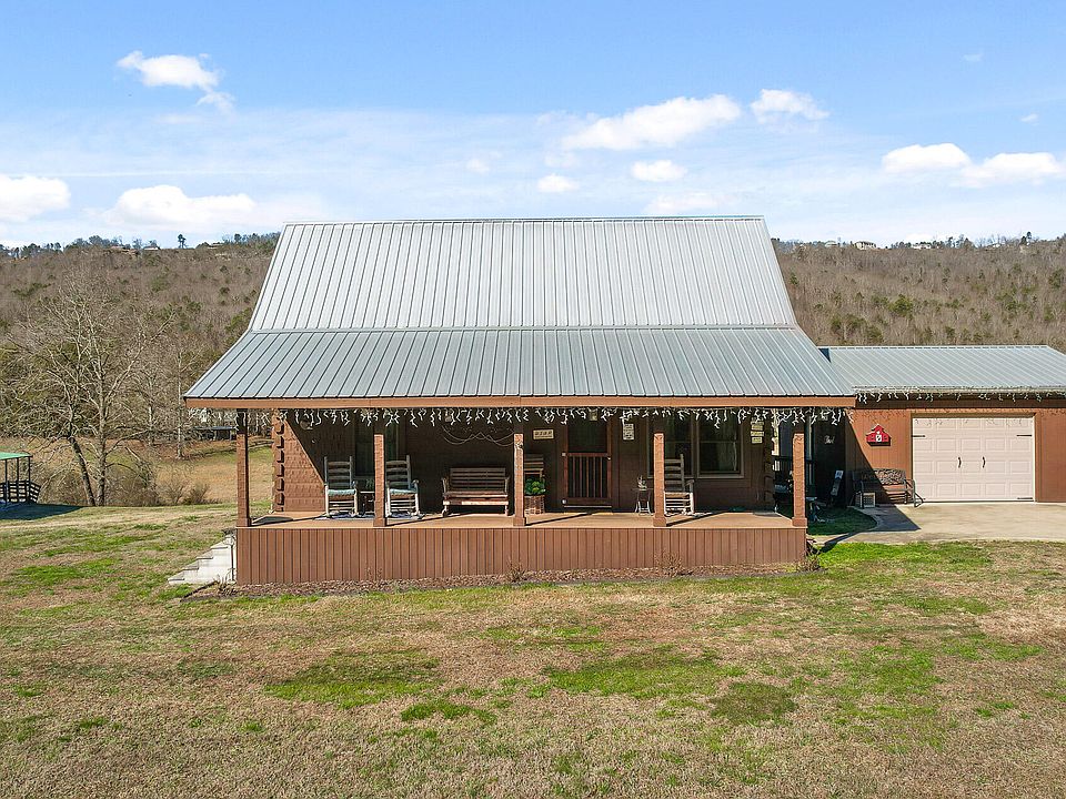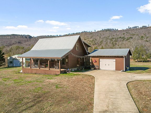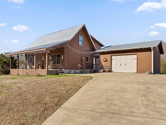 Tucked away on nearly three peaceful acres just minutes from Trenton Golf Club, this warm and welcoming cabin-style home invites you to slow down and breathe. From the moment you pull in, the rocking chair front porch feels like an open invitation to sit, stay awhile, and enjoy the quiet.Step inside to a spacious living room that immediately feels like home. The open layout flows effortlessly into the kitchen and dining area, creating a space where everyday moments and special gatherings happen naturally. From the dining room, doors lead you outside to a covered 10x14 back porch and an additional 10x14 screened porch, giving you the freedom to enjoy the outdoors in every season. Morning coffee, evening conversations, and long weekends feel right at home here. A powder room on the main level makes hosting friends and family easy and comfortable.The primary suite on the main level offers a true retreat, complete with three closets and a private ensuite bathroom. It's a space designed for rest and simplicity at the end of the day. Upstairs, two additional bedrooms offer generous storage and share a full bathroom. A walk-out storage area of approximately 300 square feet provides incredible flexibility, whether you keep it as storage or imagine finishing it into something more.Outside, the possibilities continue. A large detached building with a roll-up door and built-in shelving is perfect for hobbies, projects, or a workshop you've always wanted. A second finished building with its own mini-split system opens the door to endless options: a guest space, home gym, creative studio, or something uniquely your own.Whether you're dreaming of room to roam, space to grow, or the potential to build something new, this property offers freedom to make it your own. All of this, just minutes from Trenton and an easy 25-minute drive to Chattanooga, makes this a rare opportunity to enjoy both privacy and convenience. This is more than a home it's a place to create a life.