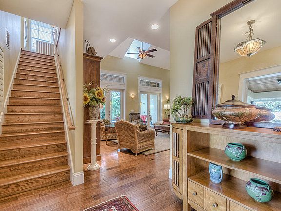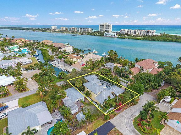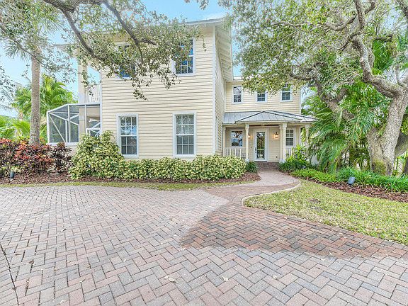 Beautiful custom built home! Five bedrooms with four full baths and a powder room. Downstairs master and a separate entrance for the 5th bedroom guest suite. Open concept living area with oversized soaring ceiling living room and designer kitchen complete with cabineted fridge and ample cabinet space. Super private loggia with wood inlay ceiling and screened in pool and hot tub area. Hardwood flooring throughout all living area with carpet in the bedrooms. Washer and dryers upstairs and downstairs! High hats in the main living area.Peek at the intracoastal from your guest bedroom balcony.Bonus non-deeded boat space in the finger canal across the street. This is coastal living at its finest!!Make sure to check out the virtual tour.Use your finger or mouse to navigate through the house