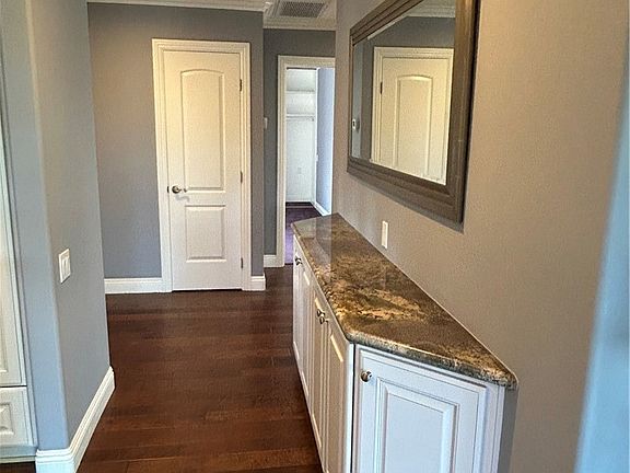 Custom cabinetryOpen layoutWood plank flooringBeautiful granite countertopsCrown moldingNewer kitchen appliancesLarge outdoor patio