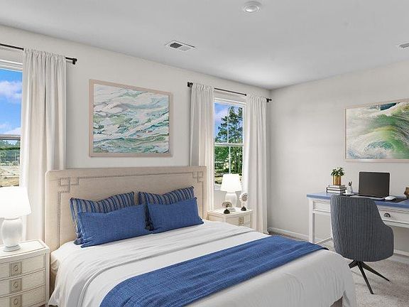 This two-story home features a family room and modern kitchen that melds together to promote seamless everyday living, along with an entrance to the backyard for outdoor activities. Upstairs are all three bedrooms, including the owner's suite with an en-suite bathroom and two generous walk-in closets