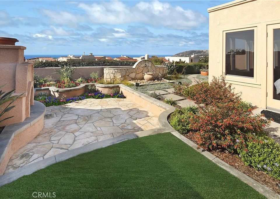 This Luxury single-level Mediterranean VILLA located in the gated oceanfront community of Niguel Shores near the Ritz Carlton Hotel, Links Golf Course, Salt Creek Beach and The Strands, the Dana Point Marina and the Art Colony of Laguna Beach features panoramic Ocean, Catalina Island sunset views, and coastal views to Palos Verdes. The property has been remodeled and expanded throughout and boasts a large dramatic entry, Great Room open concept design with fireplace and custom cabinetry with display lighting, a Chef's kitchen with stainless steel newer Dacor appliances, limestone counter tops, convection oven, warming oven and built in refrigerator plus large kitchen island with bar seating. In addition, there are 3 Bedrooms plus den/office, 2.5 Baths, and ocean views from all main rooms. The spacious primary suite with ocean view includes a newly remodeled bath with dual vanity sinks and quartzite counters, separate free-standing tub, walk in closets, and walk in steam shower. The all new hall bath includes designer tiles and finishes. The delightful floorplan includes vaulted ceilings, beautiful wood flooring, custom lighting, skylights, exceptional architectural woodworks, inside new laundry room, A/C, and a new custom walk in pantry plus an outdoor shower perfect after a day at the beach. The exterior includes a gated courtyard entry patio while the backyard provides the perfect serene spot to entertain and enjoy the amazing ocean and sunset views complete with an outdoor kitchen with built in BBQ and sink, outdoor fireplace and fountain. The finished two car attached garage includes ample loft storage with automated ladder and a half bath. The community of Niguel Shores spotlights an oceanfront blufftop park complete with direct beach access and parking lot, greenbelt trails and walkways, plus a lavish Clubhouse complete with Jr. Olympic size Pool, Spa, Pickle Ball, Tennis, Sport's Courts and Park. The community of Niguel Shores offers a multitude of activities and clubs from Bridge to Gardening, Golf, Tennis and more...Take the Trolley to Laguna or hike to the harbor and Dana Point shops, or relax and enjoy the ever-changing ocean and sunset views from your tranquil patio areas. Enjoy the fun and festive beach lifestyle all year around living in Niguel Shores...The "Best-Kept" Secret Along The Coast!