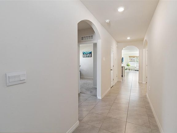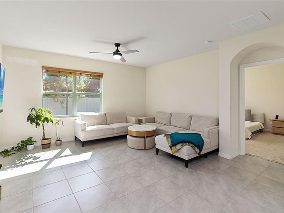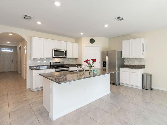 Come See Your New Home!!! This north-facing home receives the sun side to side, allowing Florida’s beautiful sunlight to flow freely throughout as it energizes each day. The 4 bedroom, 2 bathroom floor plan provides a triple split bedroom arrangement for privacy, keeping the primary suite in the back of the home and the secondary bedrooms up front. Two secondary bedrooms are on one side of the home with a bathroom in between them, and the remaining bedroom is on the other side of the home. None of the bedrooms share a wall. Privacy! The common areas are open concept for easy gathering & entertaining, and tile floors protect these high traffic spaces. The eat-in kitchen has a walk-in pantry, there are granite countertops throughout, and the dining area exits out onto a covered lanai for your choice of indoor/outdoor dining. This well-loved home was built on a premium corner lot in 2021 by D.R. Horton. These original owners have lovingly made improvements by adding window blinds, kitchen backsplash, smart ceiling fan in living room with adjustable color temperature, washer & dryer, water softener/filtration for whole house + under kitchen sink, epoxy floors in the garage along with a garage door motor & 240V outlet, plywood in the attic for storage, surveillance cameras, gutters, and a front storm door for the option of even more beautiful natural light. Bonus: The waterfront community pool & tot lot are approximately a quarter mile away! THIS is your next home sweet home!