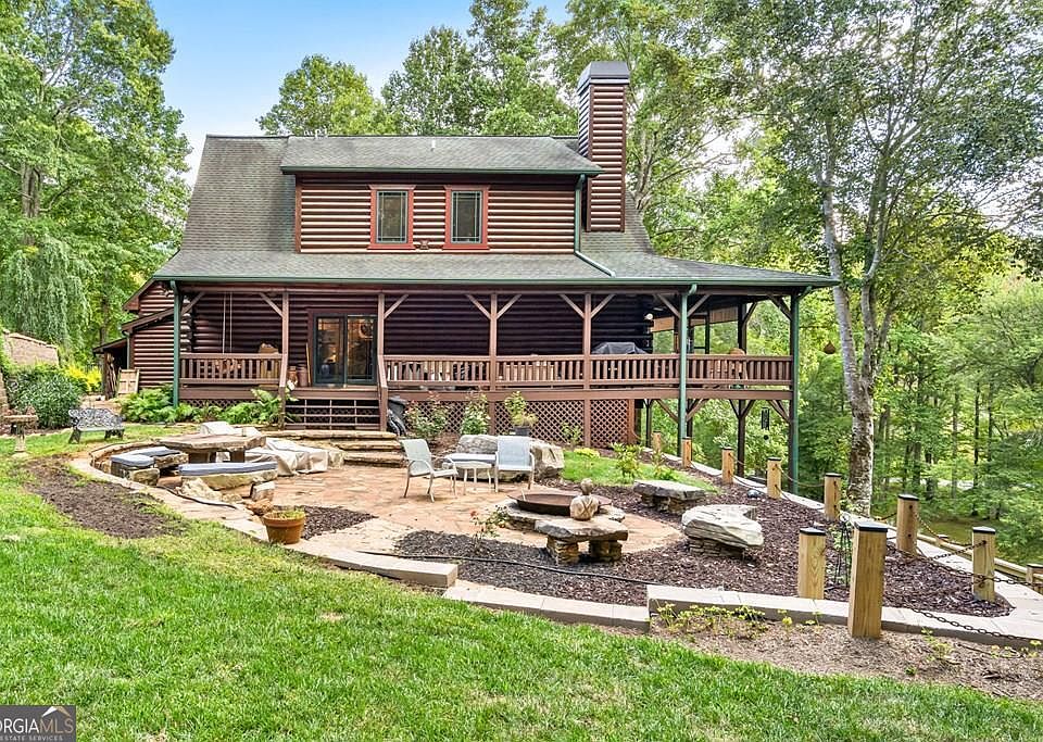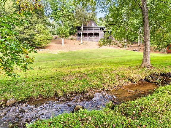 Luxurious Creekside Lodge-Style Retreat in North Georgia Mountains! Nestled in the upscale Indian Springs community, this high-end, lodge-style home in the North Georgia Mountains offers 4 bedrooms and 3.5 bathrooms, plus access to a 10-acre common area featuring a pond and barn. The main level boasts a wraparound covered deck with a screened-in room, perfect for enjoying stunning mountain and creek views. Inside, you'll find a welcoming foyer, a great room with a soaring stacked-stone wood-burning fireplace, a dining area, and a gourmet kitchen with quartz countertops, stainless steel appliances, a copper backsplash, a custom hood vent over the gas stove, and a butler's pantry. Additional conveniences include a mudroom, half bath, an oversized 2-car garage with a workshop area, and an elevator for easy access. Upstairs, discover a spacious master suite with a wet bar, a luxurious master bath featuring a jetted tub and a large walk-in tiled shower, a guest bedroom suite, and a laundry room. The lower level offers two additional guest bedrooms, a full bathroom, and a cozy living room with a built-in bar and a stacked-stone gas-log fireplace. Outside, enjoy a fenced-in dog run, a large stone patio with custom stone seating & fire pit, a stone walkway to a tractor shed, and elegant custom iron gates. A charming one-room outbuilding serves as an ideal home office, she-shed, or man cave. This exceptional home is equipped with premium features, including a whole-home generator, an underground sprinkler system, and a security system, ensuring comfort and peace of mind.