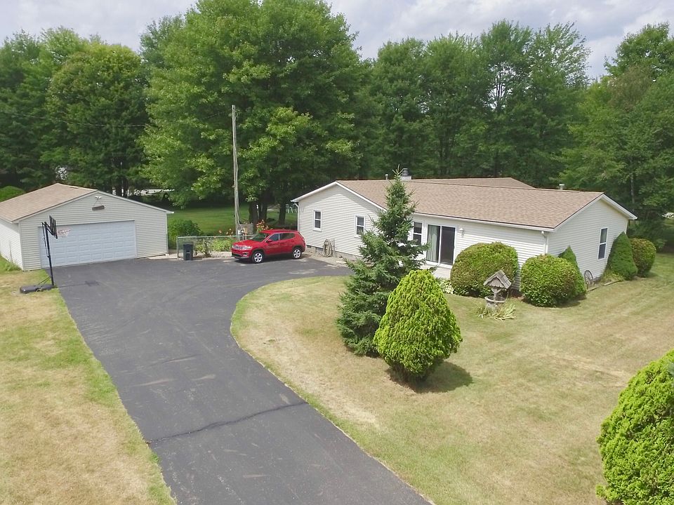 4 bedroom 2 bathroom ranch sits on 2 acres that is assisted living ready including 42" doorways. Enter the home into the updated spacious eat-in kitchen, featuring modern white shaker cabinets, stainless steel appliances and a peninsula with room for seating. The open concept kitchen & dining room flows seamlessly into the living room. All bedrooms are spacious with large closets for storage. Enjoy all of the seasons and wooded views from the spacious Florida room. The large rec room is the perfect space for entertaining and to use as additional living space. Storage area behind bar could easily be turned into a handicap accessible bathroom. Outside you will find a pole barn and shed that can be used for workspace and storage. Cool off this summer by taking a dip in the well-maintained pool. This home offers a secluded and private feel but is close enough to major roads to get where you need quickly. 2 furnaces and 2 a/c units. Also the pool is heated (Heater installed 2019) BTVAI.
