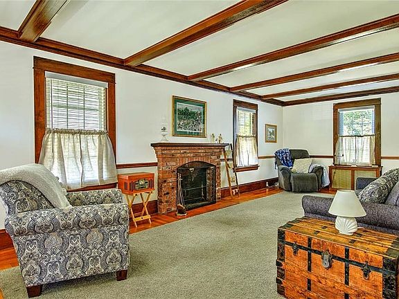 Just moments from the breathtaking views at Conimicut Point, this classic 4-bedroom, 1.5-bath home captures the essence of New England charm. Set behind manicured hedges, a welcoming covered front porch invites you into a warm and timeless interior. Inside, rich hardwood floors lead you through a gracious center hall into the spacious living room, where exposed beams and a cozy wood-burning fireplace set the tone for relaxed gatherings. The adjacent open kitchen and dining area features double ovens and a central prep island - perfect for both everyday living and entertaining. A versatile family room nearby offers potential as a first-floor bedroom, ideal for guests or one-level living. From here, step out to the expansive, fully fenced backyard - an inviting private oasis shaded by mature trees. A main-level powder room adds convenience. Upstairs, beautiful hardwoods continue throughout four comfortable bedrooms, all served by a full bath. A bonus room provides flexible space to suit your needs whether it's a home office, playroom, or creative studio. Additional highlights include a detached 2-car garage with extra attic storage. Ideally situated in a central Warwick location, you’re just minutes from the Rocky Point bike path, the shops and dining of Warwick Mall, and the convenience of TF Green Airport and its commuter rail. With quick interstate access, Providence’s renowned dining, arts, and entertainment are just a 12-minute drive away.