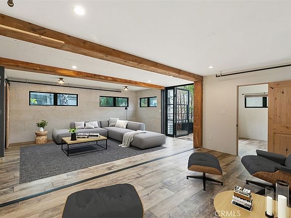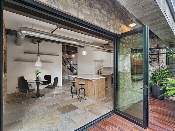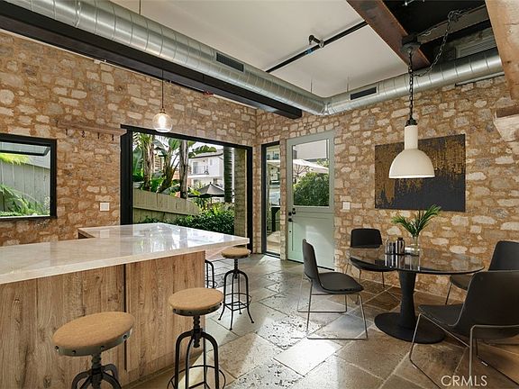 Nestled in the highly sought after Lantern District area of Dana Point, this extraordinary single-family home stands as a testament to innovative design and sustainable living. Crafted from repurposed shipping containers, the residence seamlessly blends modern aesthetics with eco-friendly materials. As you approach you are welcomed by a striking custom-built automatic sliding barn door, crafted from reclaimed wood sourced from Idaho. The stunning door features a secret man door and soundproofing which sets the tone for the unique character of the home. The spacious garage also doubles as a studio for artists, complete with a built-in Murphy bed for guests. The interior has so many stylistic features. The reclaimed French limestone floors interpret both luxury and environmental consciousness. Quartz countertops adorn the kitchen, complemented by a pass through flip out window with an exquisite countertop slab of Italian travertine. The exterior boasts a bison pedestal deck with Brazilian hardwood, offering a perfect blend of durability and style. The living space seamlessly connects with the outdoors through a La Cantina steel bifold door and an outdoor shower, adding an element of relaxation and natural beauty. The outdoor space is ultra private and perfect for entertaining. Stone walls, a custom blend of textures, and board form finish concrete beams contribute to the home's unique and robust aesthetic. Upstairs, a custom-built steel door leads to a balcony, while reclaimed wood beams add warmth and character. The back balcony, featuring a cool corrugated roof overlooks the lush surroundings. All windows are fiberglass with a sleek black finish and provides a modern and cohesive look throughout. Technological conveniences abound with a Lutron lighting system, Nest thermostat, and low-voltage lighting by Alliance, ensuring both efficiency and ambiance. The property is equipped with a 500-amp panel, offering ample power, and the heating and cooling systems are top-notch, with a 2.5-ton unit and a new A/C unit. Built on 15-foot-deep caissons, the house is earthquake-resistant, providing peace of mind. The entire structure, from the metalized handrails and fencing to the custom-built cabinets, reflects a commitment to quality and durability. This home has local celebrity with multiple articles written about it in the Dana Point Times. This home is a must see.