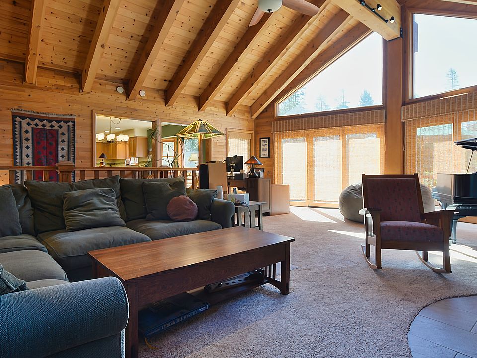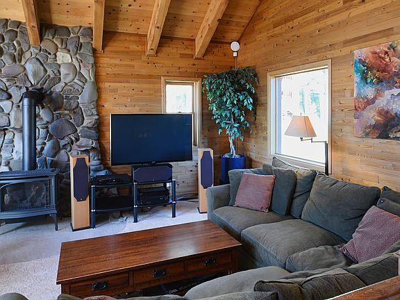 This 3 bdrm 3 bath home comes furnished. Large windows give way to mountain-scapes and forest surroundings that one may enjoy while sitting next to the gas-powered fireplace. With and additional gas fireplace in the primary bedroom. The main floor has a large vaulted living room, with open views of the forest, meadow and cliffs. Also on the main floor resides the kitchen and dinning area. The lower quarters of the home features 3 bedrooms with access to a lower deck. Each level of the home has an outdoor patio that is oriented in opposite directions so as to take full advantage of the sun.