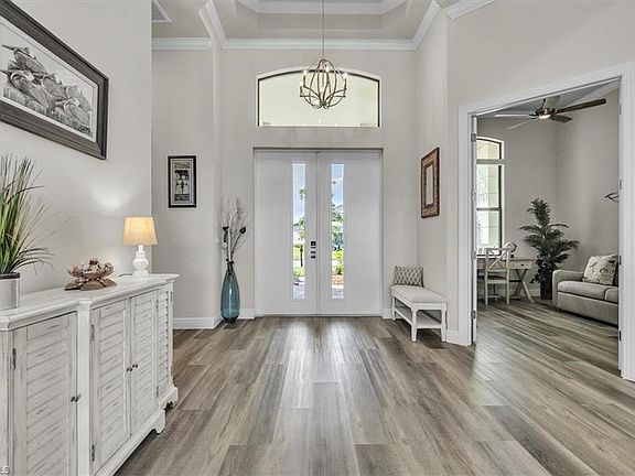Discover the epitome of luxurious, low maintenance living in this stunning 2024 custom-built home by Beattie, nestled on the premium street of Chestnut Grove Drive within the prestigious River Hall Country Club. Offered turnkey and backed by a one-year home warranty, this meticulously crafted residence is ready for you to move in and enjoy. Boasting three spacious bedrooms plus a versatile den/office, and three and a half elegantly appointed baths, this home seamlessly blends comfort and modern sophistication. The open-concept design features luxury vinyl plank and tile flooring throughout, complemented by a built-in fireplace that adds warmth and ambiance to the living area. The kitchen appliances include GE profile appliances and built-in wine fridge. That open concept flows effortlessly into the expansive great room, highlighted by 14' ceilings and a dramatic 24' slider that opens to an enormous lanai with panoramic picture window, creating an indoor-outdoor oasis perfect for entertaining with a breathtaking view of the lake and golf course that can only be described as INCREDIBLE. Step outside to your private paradise: a sparkling saltwater pool and spa, an outdoor kitchen for al fresco dining, and lush surroundings that capture the essence of Florida living. The master suite is a true retreat, with a spa-like bath offering a walk-in shower and separate freestanding tub. Practicality meets style in the laundry room offering built-in cabinets and a generous amount of storage. The spacious three-car garage features epoxy floors and even includes a GOLF CART! Built with resilience in mind, the home includes impact windows and doors for peace of mind. Don't miss this opportunity to own this incredible home in River Hall Country Club. River Hall Country Club is a warm, friendly gated golf community in Alva, where neighbors quickly become friends and every resident is greeted with a smile. This welcoming enclave offers an 18-hole Davis Love III championship course, resort-style heated pool, tennis, pickleball, bocce, organized golf leagues for men and women, and a vibrant social calendar. Conveniently located just 35 minutes from RSW International Airport and Punta Gorda Airport and 45 minutes to the sugar-sand beaches of Fort Myers and Sanibel, River Hall sits comfortably outside the flood zone, giving you peace of mind and lower insurance costs while enjoying the best of Southwest Florida living.