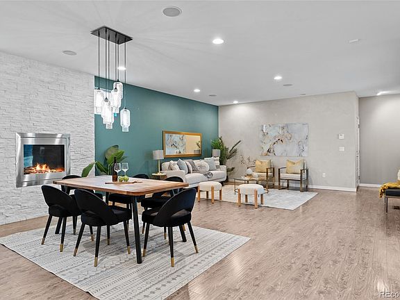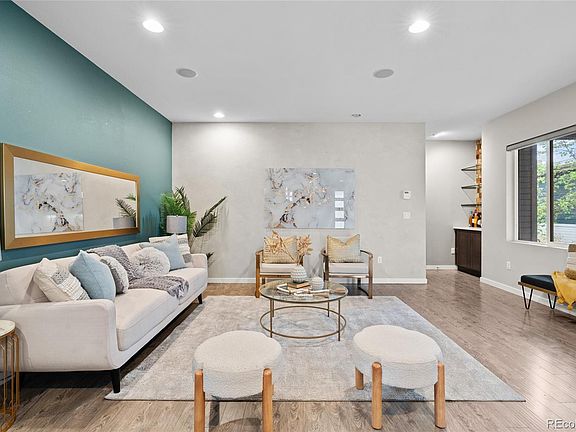 Prepare to fall in love with this stunning contemporary residence in the Spaces community of Highlands Ranch! The main level of the home features a home office, open kitchen/living/dining area, stainless steel appliances, quartz countertops, a gas fireplace, a bar area, a powder room, a built-in speaker system, and access to the covered back porch and private back yard. The second level offers a fantastic loft flex space, a primary suite with a large walk-in closet and luxurious primary bathroom, two guest bedrooms, a full hallway bathroom, and a laundry room (washer/dryer included!). The recently remodeled basement (2020) features a large home theater room (visual/audio equipment and seating included), a conforming guest bedroom (also great as a workout room), an incredible bathroom with heated tile floors and a jetted tub, and a storage/mechanical room. The two car attached garage ensures that you'll never get wet on rainy/snowy days, and solar panels keep your energy costs low on a monthly basis! Brand new carpet upstairs installed in May 2025. The neighborhood is very private and quiet, and the nearby greenbelt and park access is a big bonus! Very close to several great schools, Whole Foods Market, and lots of restaurants! Buyer to verify all information.