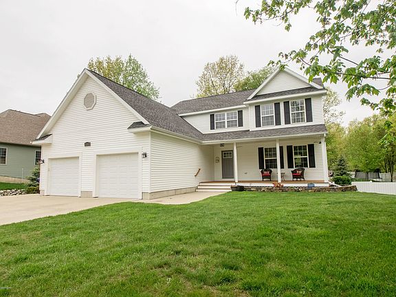 3384 Rambling Brook is located in Fruitport School and a must see. It features 4 bedroom 3 1/2 baths a 2 stall attached garage sitting on nearly an acre of land. Over 3,300 finished square feet, gorgeous kitchen with granite countertops, dining area, formal dining room, 2 living rooms on the main floor, gas log fireplace, main floor laundry with a half bath, 3 bedrooms upstairs, a huge master bedroom with an amazing ensuite with a tiled shower, and an additional full bath upstairs. In the daylight basement you will find a bar area, a re/workout room, an additional living room with an electric fireplace, 4th bedroom and another full bath. Outside you can enjoy the large deck with composite decking, a fully fenced in back yard that has generous landscaping and an